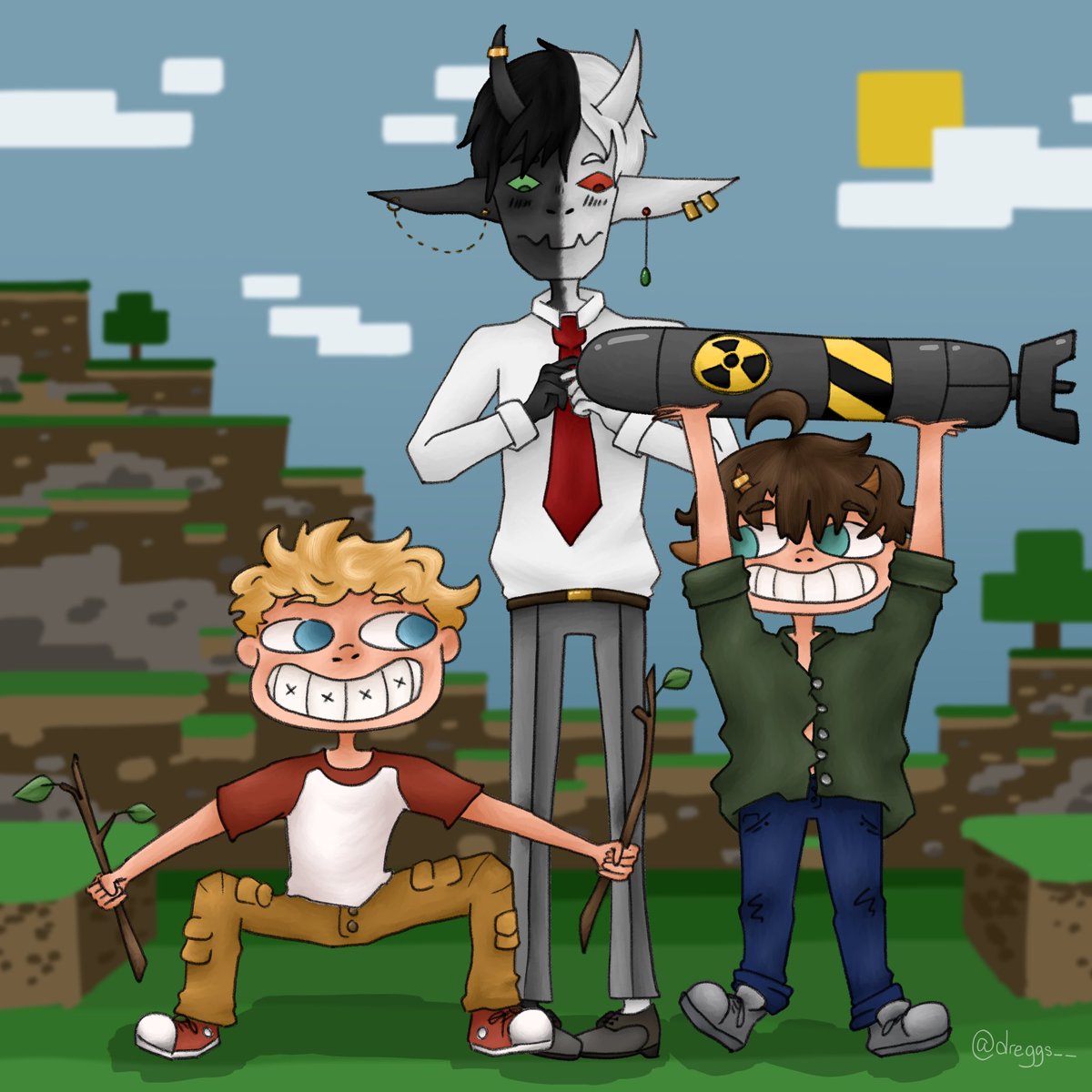 Repost of fixed fanart I did for the most recent MCC,, I just did it in a bit of a rush and wanted to fix it ;-; This team was still so fun to watch <3 #mcc #MCChampionship #mccfanart #emeraldelves #emeraldelvesfanart #dreamfanart #tubbofanart #ranboofanart #slimeciclefanart