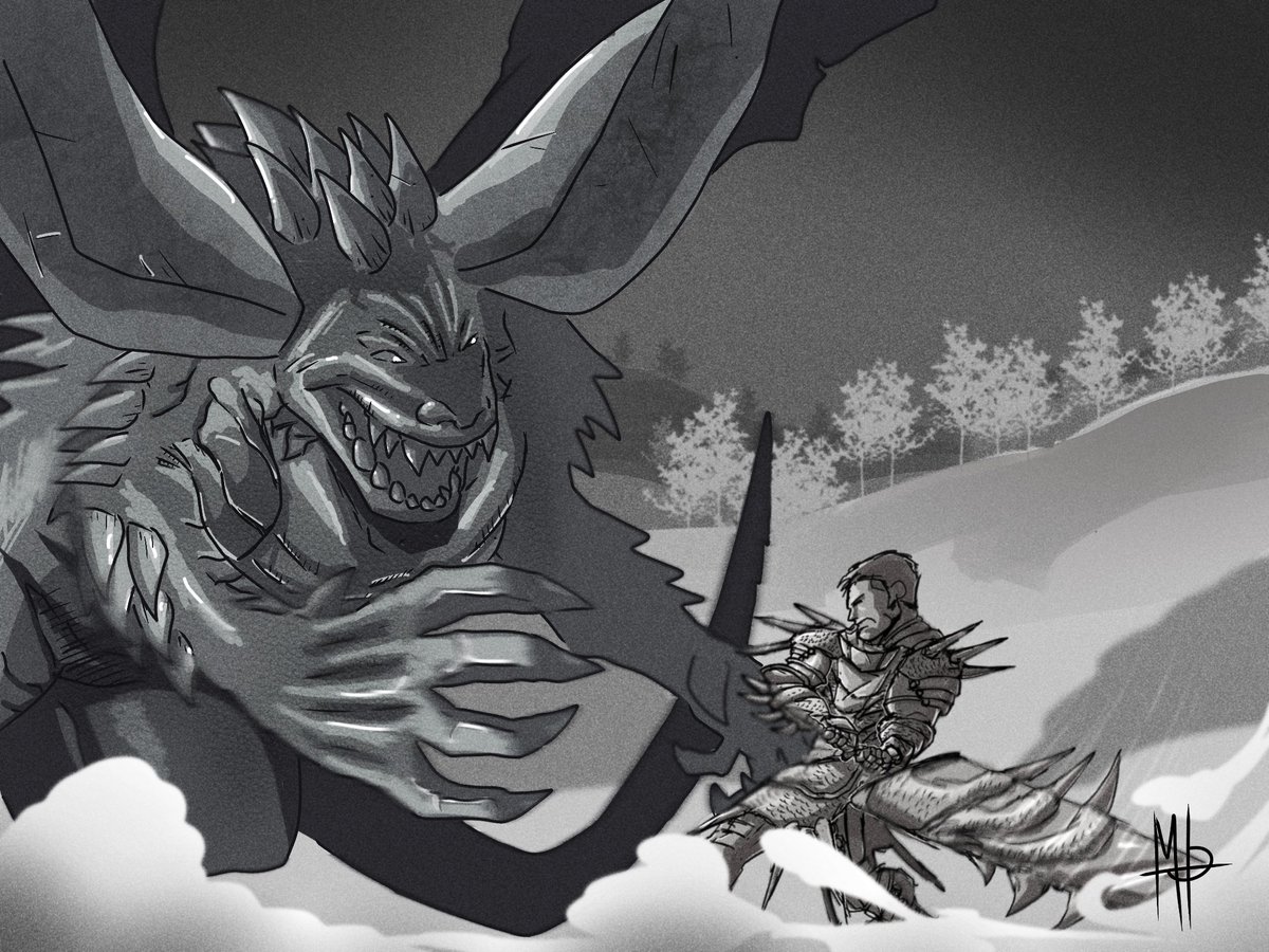 A quick follow up for an even quicker sketch I‘d drawn for the fifth day of #Inktober, based on the Monster Hunter games. #MonsterHunter #MHW #monsterhunterworld #inktober2020 #digitalart #MonsterHunterWorld #mhwfanart #monsterhunterfanart #monsterhunterart #videogameart