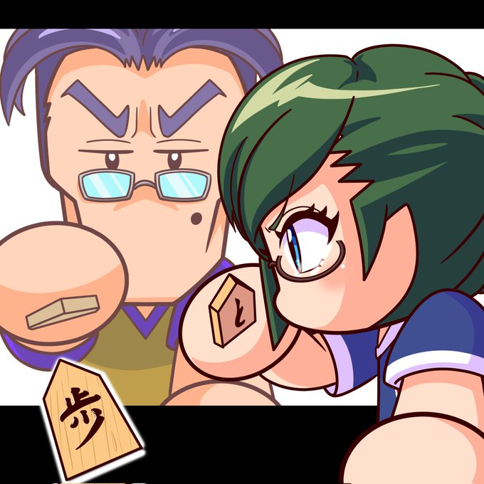 リクエスト(DMから)より、「将棋で対局している駒ノ井 歩と角馬 飛竜」 描きました😊 角馬ラスボス感あっていい感じですねぇ~(将棋盤大変だから描かないようにしただけとは言えない…)