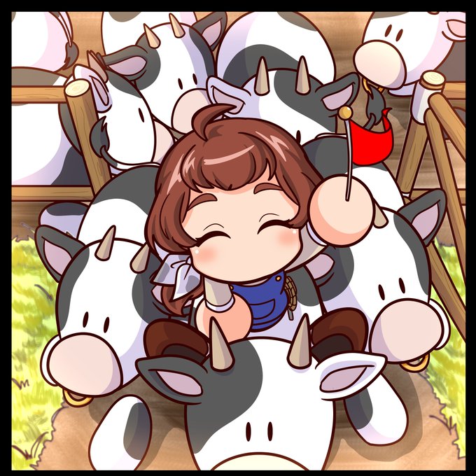 2 18 リクエストより、「牧場で牛さんと遊ぶ生駒ちゃん」 描きました😊 やっぱ千草ちゃんは描いてて楽しいですわ 22/12/09 20:53