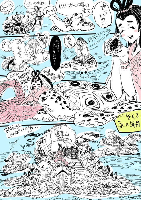 0 9 落書きフォルダの中にあった 昔流行った 魔女集会で会いましょう テーマで描いたと思われる。 魔女的な人魚な乙姫と子亀な霊亀 21/08/30 18:09