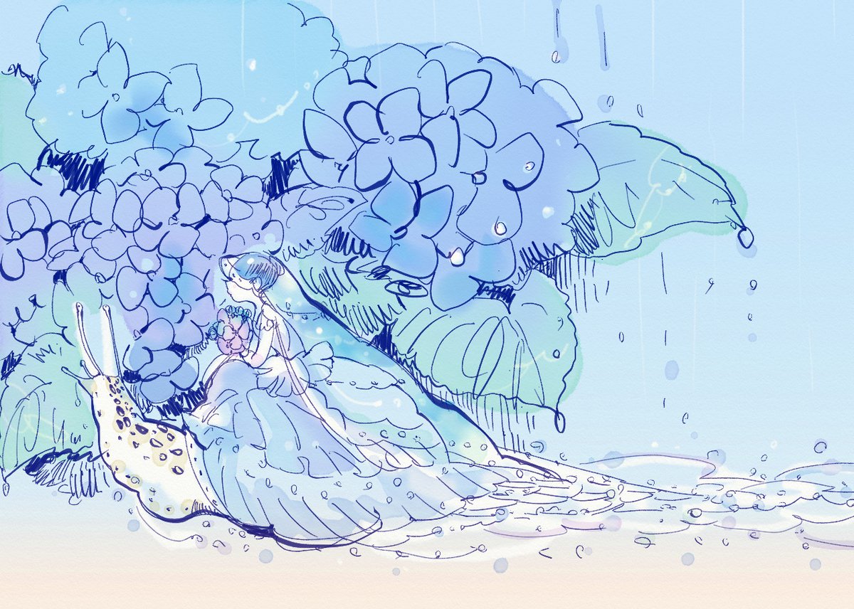 雨は嫌だけどアジサイは綺麗な 6月 ナメクジも嫌だけど 絵ならありか あのべたべたの軌跡も。過去絵。