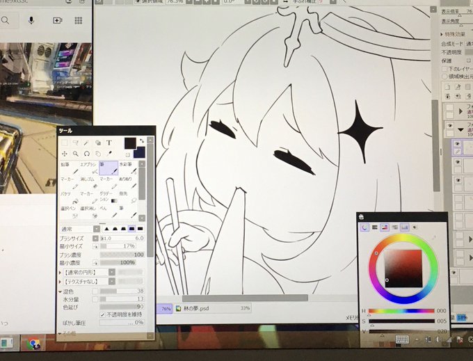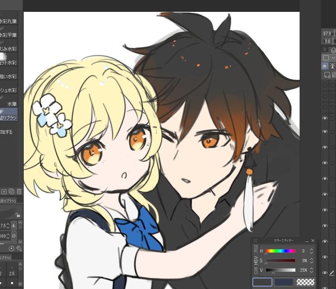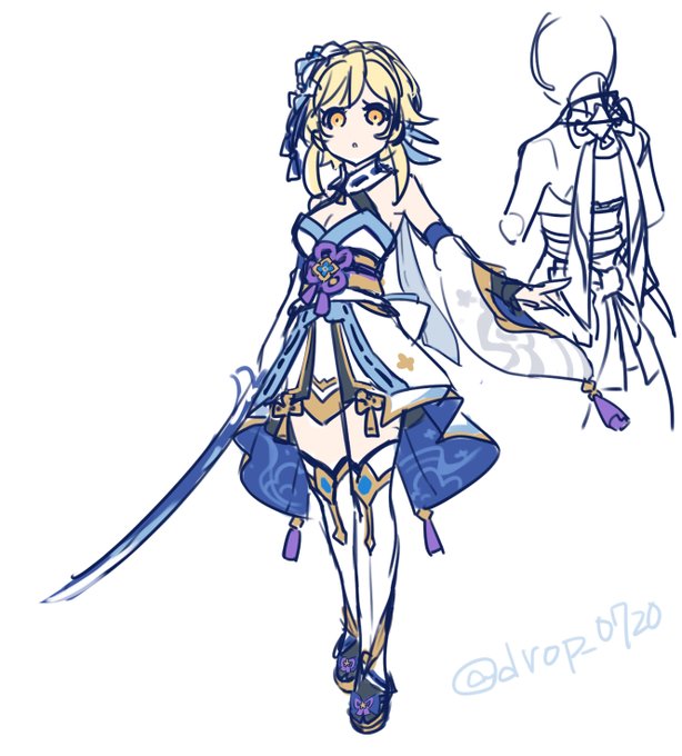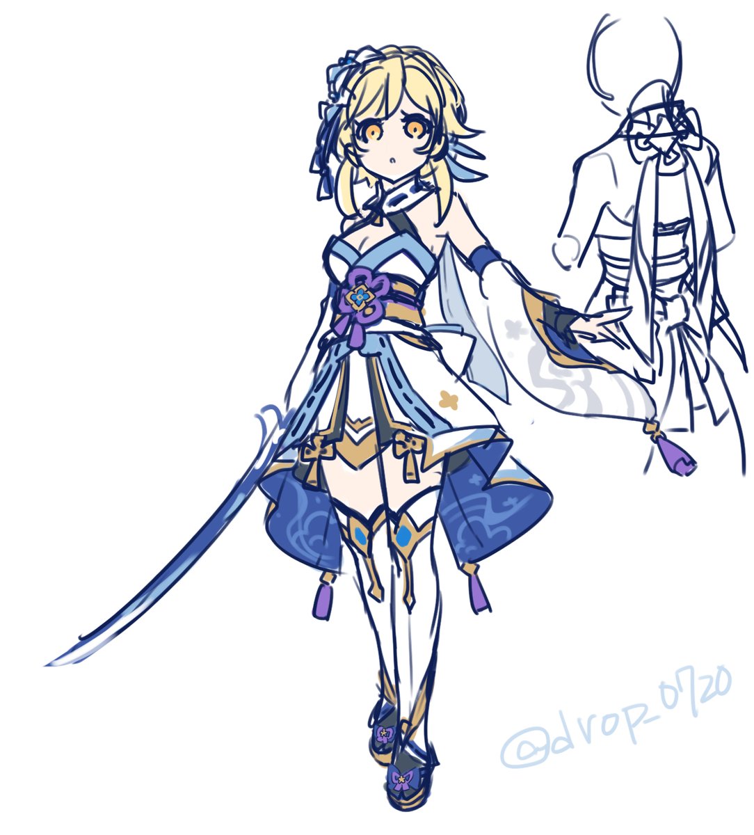 新武器っぽい感じ&綾人に寄せた 蛍ちゃん衣装アレンジしていた🤤 今のところ綺麗に描く気力ないから後で消すかも