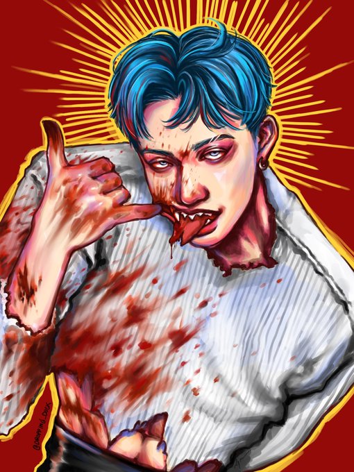// blood Chan is hungry, mind if he takes a bite? #SKZxZombiesparty #BangChan #Chan #Straykids #Straykidsfanart