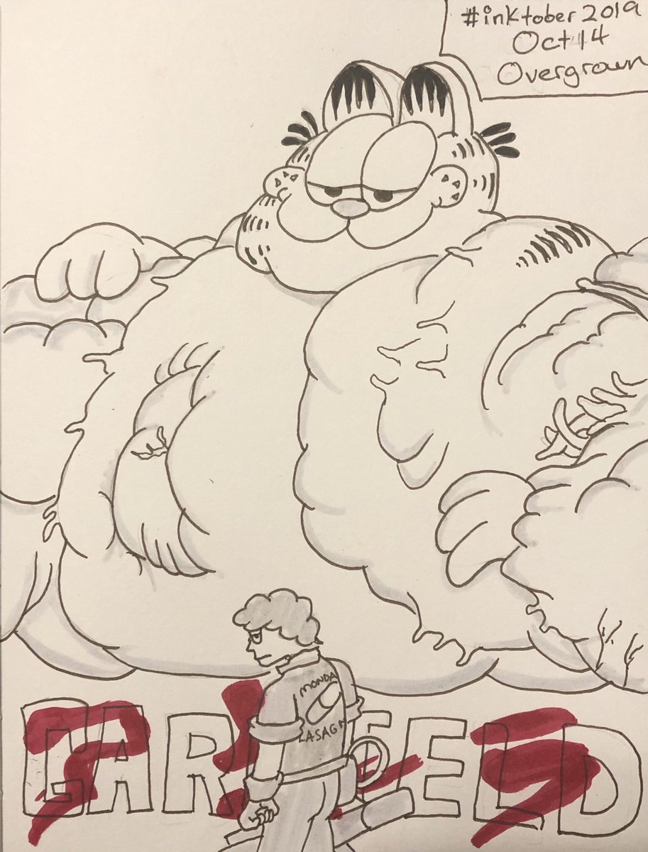 Day 14 #inktober2019 #octinky #overgrown #garfield #akira The only completely truthful piece I have ever made as an artist. I have finally reached my peak. Everything I produce going forward will forever be mediocre in comparison. #lasagna #monday #kaneda