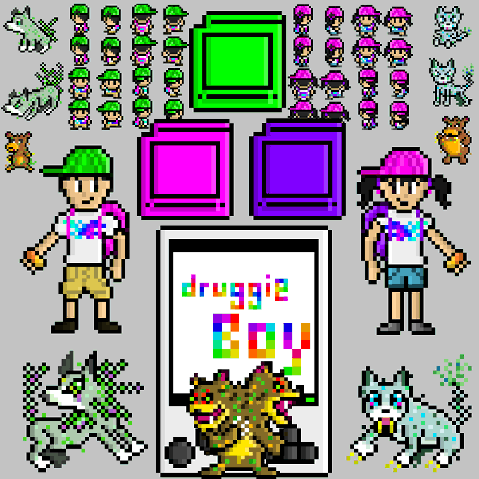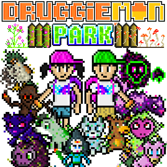 Druggiemon PARK - Available soon for download! #druggiemon #pokemon #jrpg #pixelart #indiegame #psychedelic #druggie