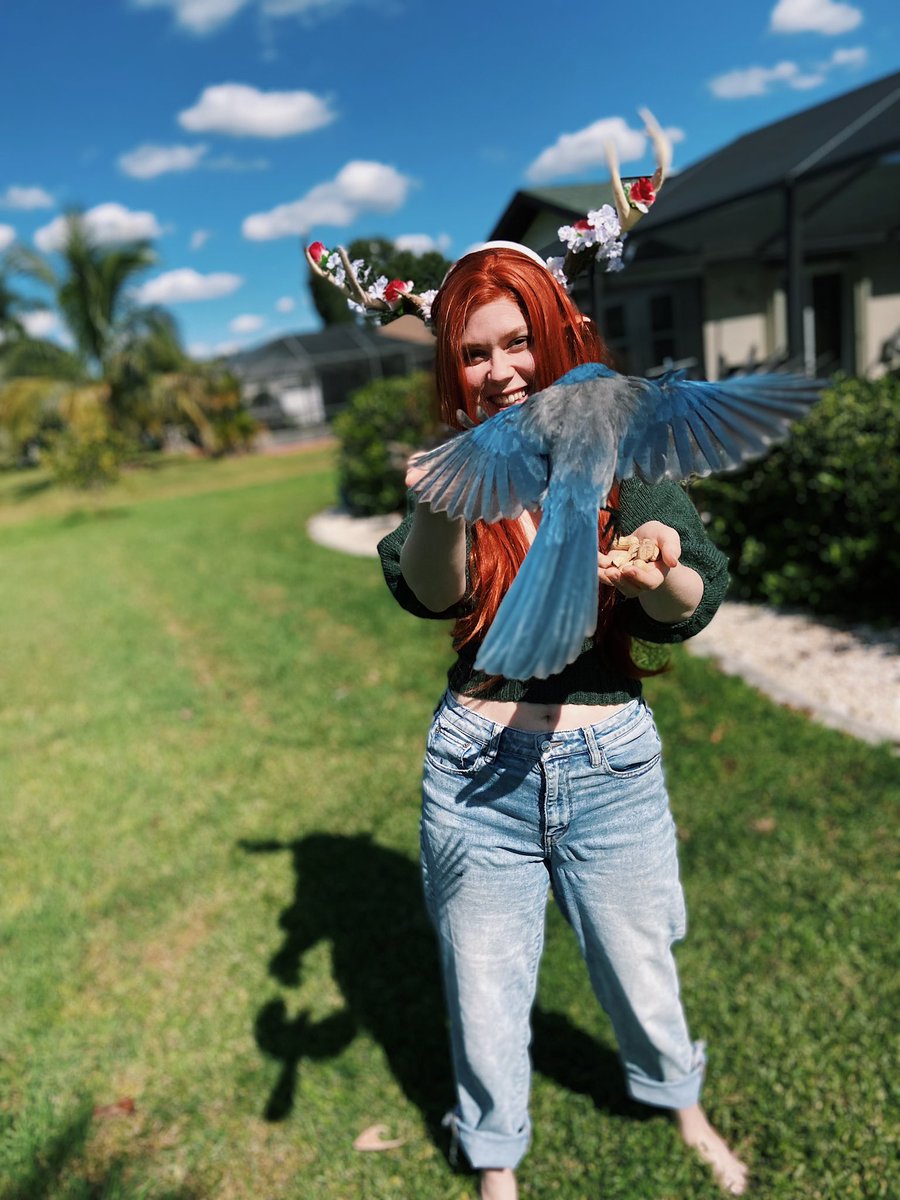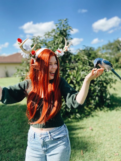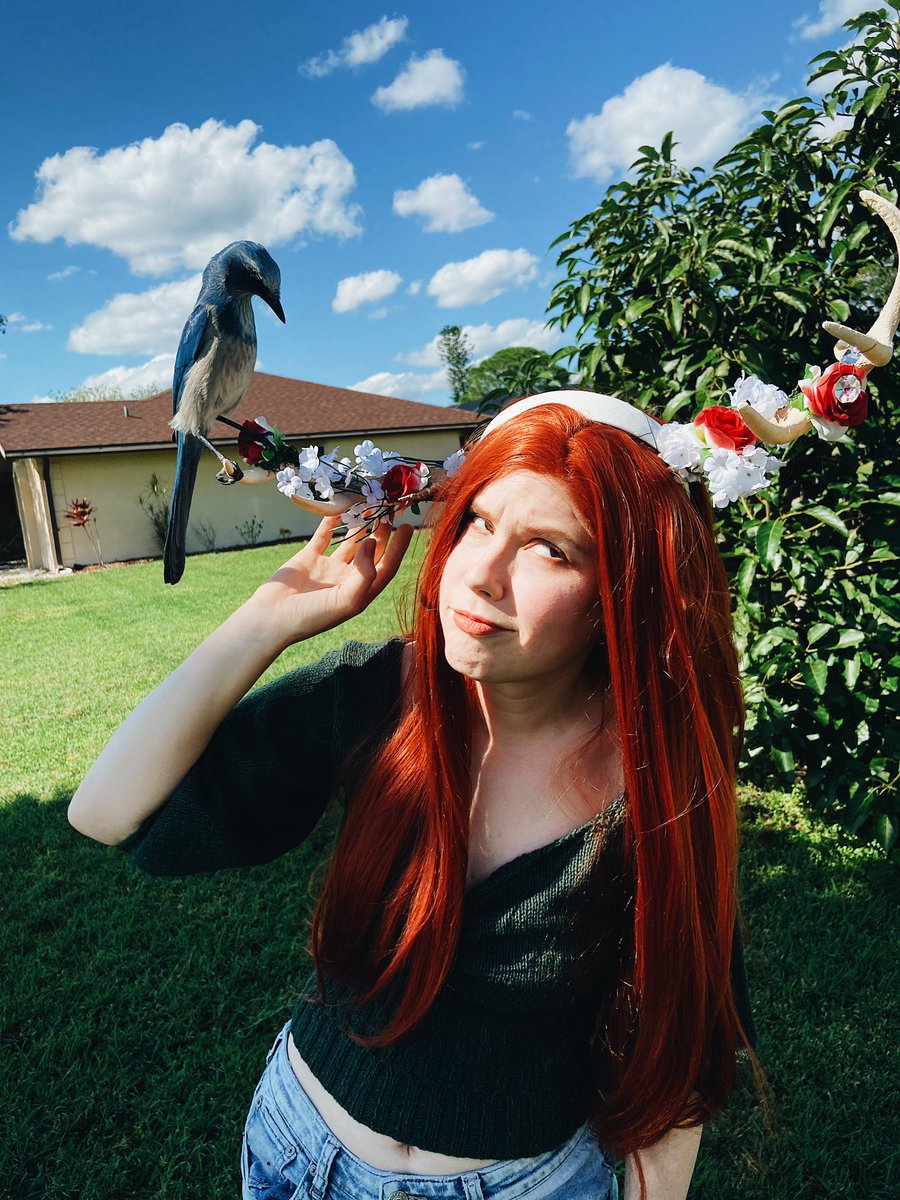 Did I ever post my casual keyleth cosplay while playing with my scrub jays photos here? @Marisha_Ray Keyleth attracts all kinds of bird boys apparently!! 😂 @CriticalRole #CriticalRole #CriticalRoleArt #criticalrolecosplay