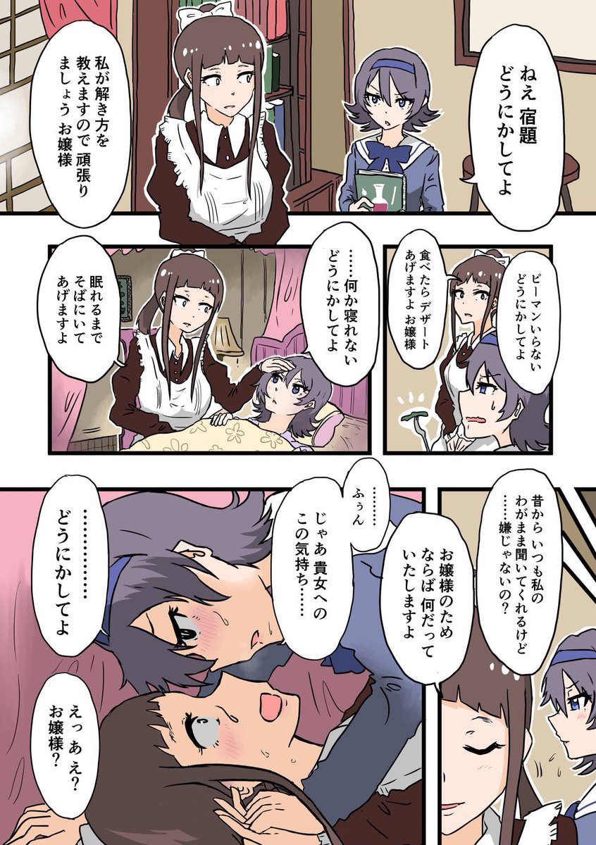 昔描いた「どうにかしてよ」のお嬢様とメイドさんでした あと100話描きたいくらい好きな二人です