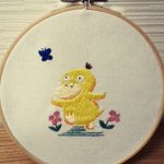 ちょうちょを追いかけるコダック #刺繍 #ポケモンファンアート