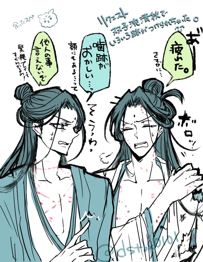 さはんOOCエアスケブ 「双子沈清秋でいろいろ跡がつけられちゃった」 リクエストありがとうございました! (額かじるな!と描いた後で思いました) #svsss