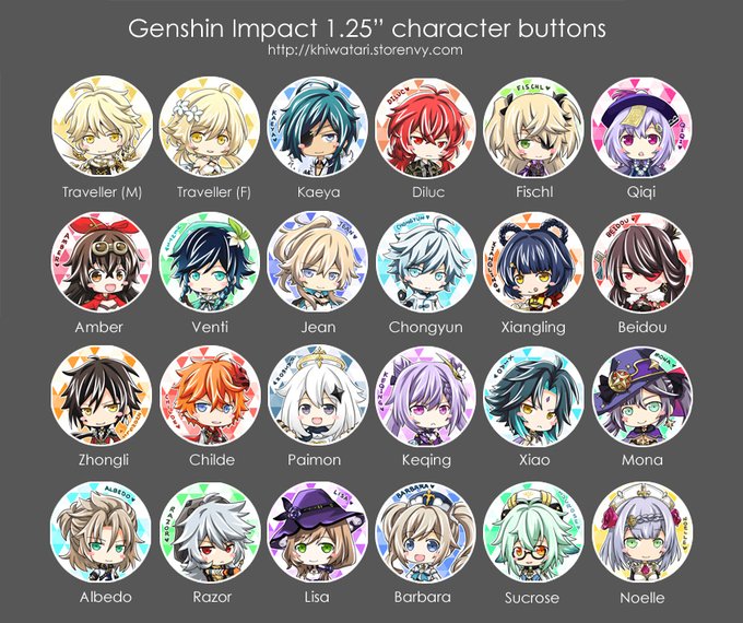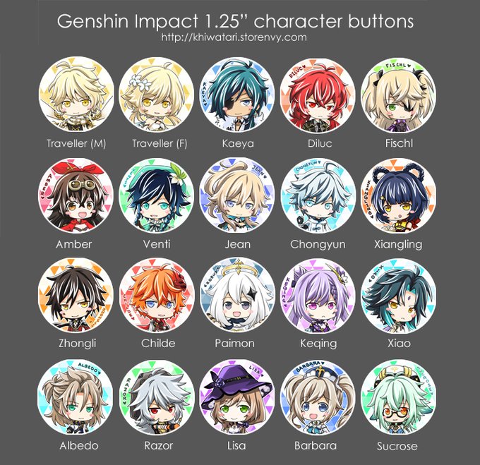 I got them all done (for now)~~ Xingqiu, Klee, Ningguang, Xinyan, Bennett and Diona added to our Genshin Impact button collection! You can get them now at khiwatari.storenvy.com/products/30385… #GenshinImpact #Genshin #原神 #genshinimpactfanart