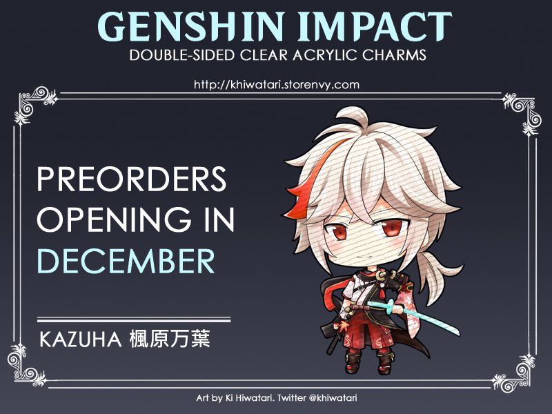 Kazuha charm coming soon~ (It takes so long to do the preorder graphics OTL...) Please look out for preorder announcements on this Twitter! #genshin #genshinimpact #genshinimpactfanart #Kazuha #原神 #楓原万葉