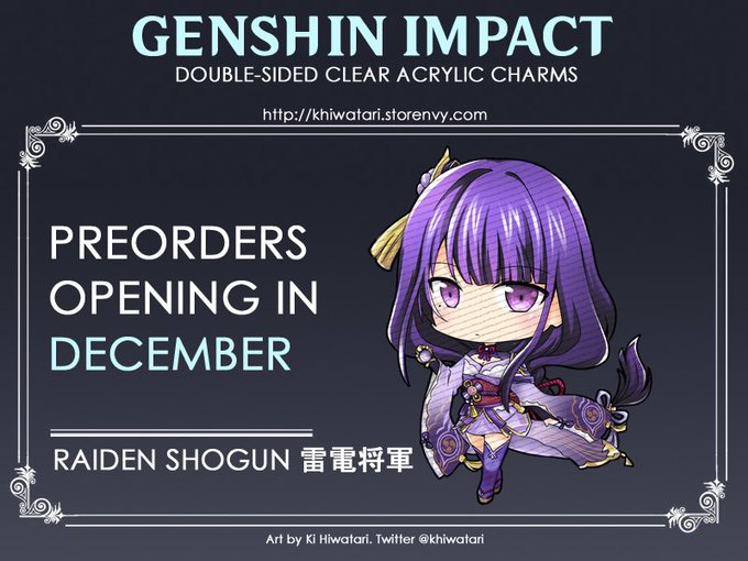 Shogun charm is coming soon~ Look out for the preorder tweet~ #genshin #GenshinImpact #genshinimpactfanart #RaidenShogun #Raiden #原神 #雷電将軍