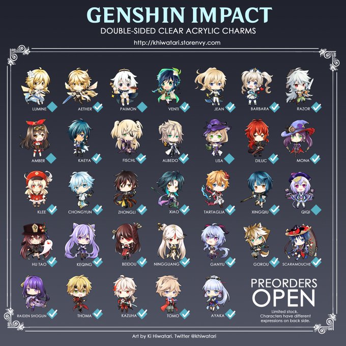 [NEW] Genshin character charms are now open for preorders! Estimated shipping in May 2022. Discount for every 3 charms~ Batch 1 includes 25 characters! Get them on Storenvy - link in next tweet! (Etsy to be updated later) #genshin #genshinimpact #genshinimpactfanart #原神