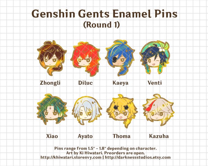 ✧GENSHIN ENAMEL PINS✧ Preorders for our Genshin pins are open! Expected shipping in late July/August but hopefully earlier. Bonus gift for purchasing 3 or 8 pins! khiwatari.storenvy.com/products/35884… #genshin #GenshinImpact #zhongli #diluc #genshinimpactfanart #venti #kaeya #ayato #xiao