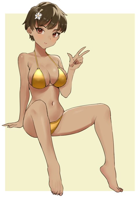 褐色+ボーイッシュ?+ゴールデンビキニで締め