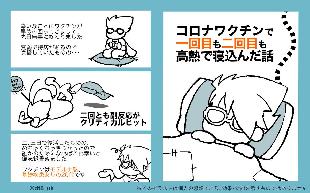 255 1178 コロナワクチン接種後、一回目も二回目も副反応で寝込んだのでレポ描きました 21/08/10 22:43