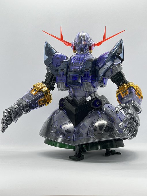 かんせーい。写真難しいな……。 RGなのに組みやすい楽しいキットでしたわ。クリアカラーの透け具合が良い感じ。……デカール貼るのどうしよっかな(めんどい)。 #ガンプラの画像を貼るとRTされると聞いて