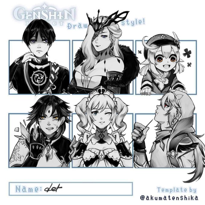 request from fb for refreshing :D #genshinimpactfanart #scaramouche #lasignora #klee #xiao #barbara #razor