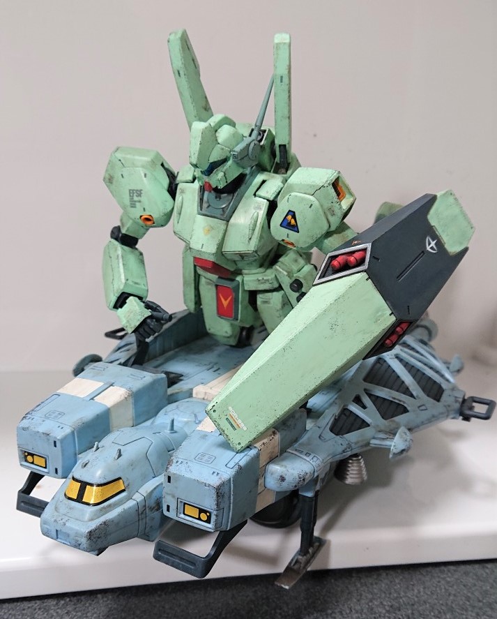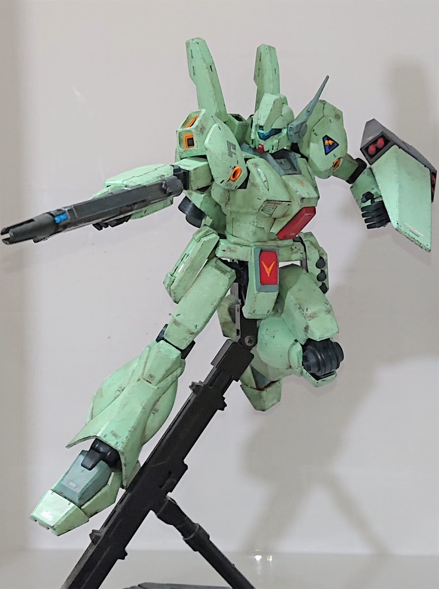 RE/100 ガンイージ 完成しました。 陸戦型仕様をベースとして、#ガンプラ凄技テクニック を参考にお手軽ランナー塗装仕上げです。意外とゲート跡が目立たなかったので汚しはナシ。 僕がサターンで大ハマりした某作品の影響を受け…エグザ…シス…スタ…バ…⚠ #ガンプラ #ガンプラ好きとつながりたい