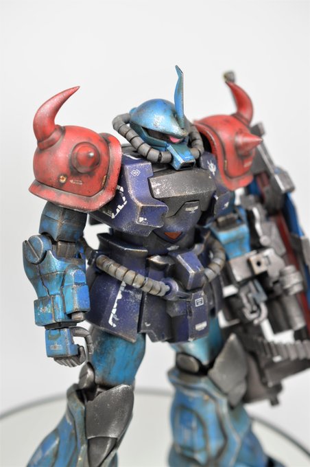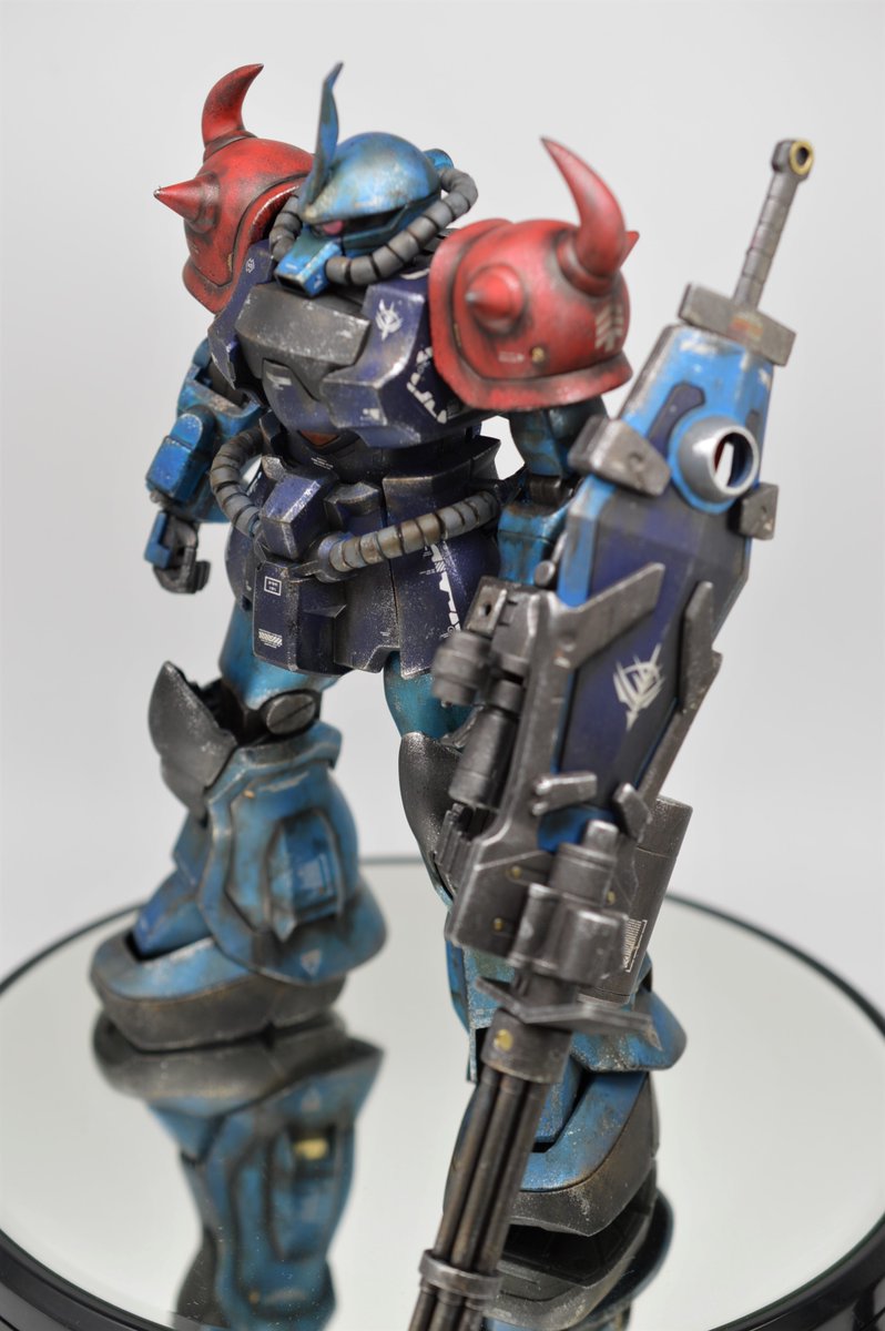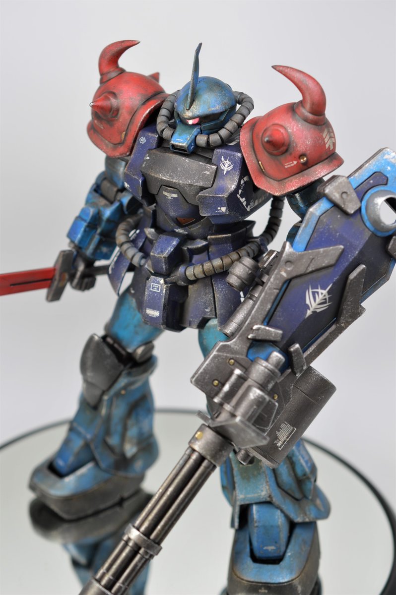 人生初のグフ系キット、MG グフカスタム完成しました! #グフの日 に間に合って良かった😅 色はニムバス・シュターゼン想定で、ランナー全塗装→ウェザリングのらいだ~Joe氏風お気軽仕上げ。大昔のキットとは思えぬプロポーションに感動! (1/2) #ガンプラ凄技テクニック #ガンプラ好きと繋がりたい
