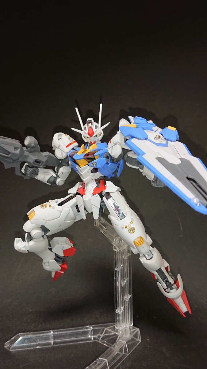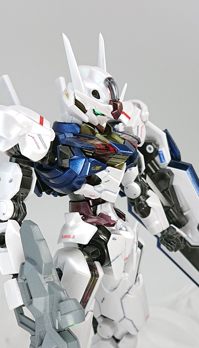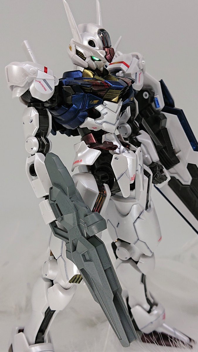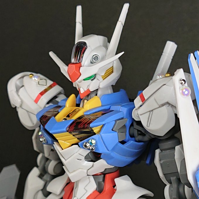 トップコート、ごく軽めのウォッシング、スミ入れ、プチ部分塗装のハイスピードウェザリングで #ガンダムエアリアル 完成しました! 長女のリクエストでちょっぴりデコっています。購入から半日でサクッと仕上げるのもいいものですね。 英才教育頑張るぞ😂 #水星の魔女 #ガンプラ凄技テクニック