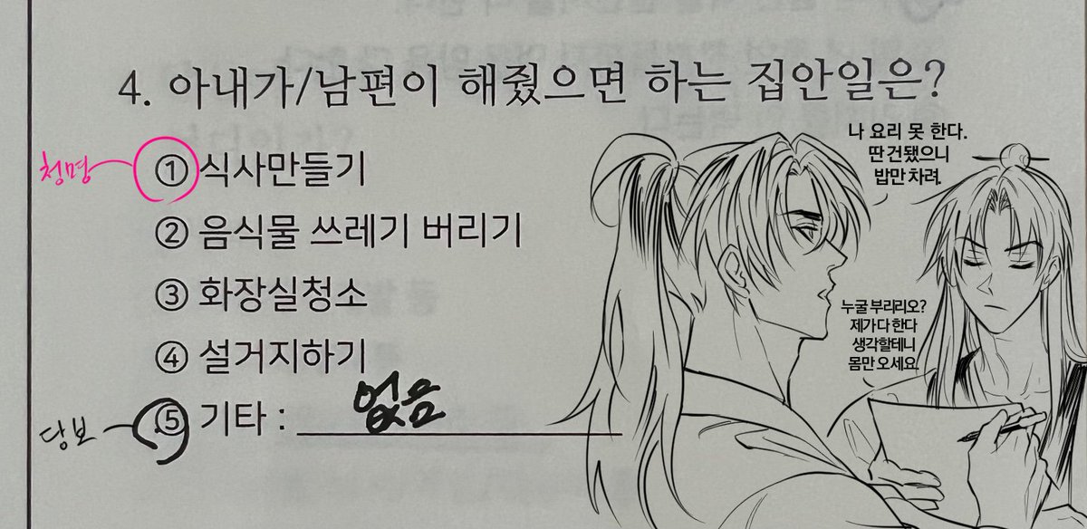 당청 캐입으로 결혼고사 한 것 중에 재미있었던 문항들이 몇개 있어서,, 감상그림 조금, . ,.ㅋㅌㅋㅋㅋㅌㅋ