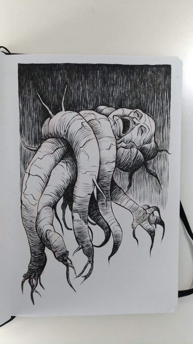 21 - sketchbook/ treino de pincel #pentel #pentelfudepen #psychologicalhorror #ink #illustration #blackandwhite