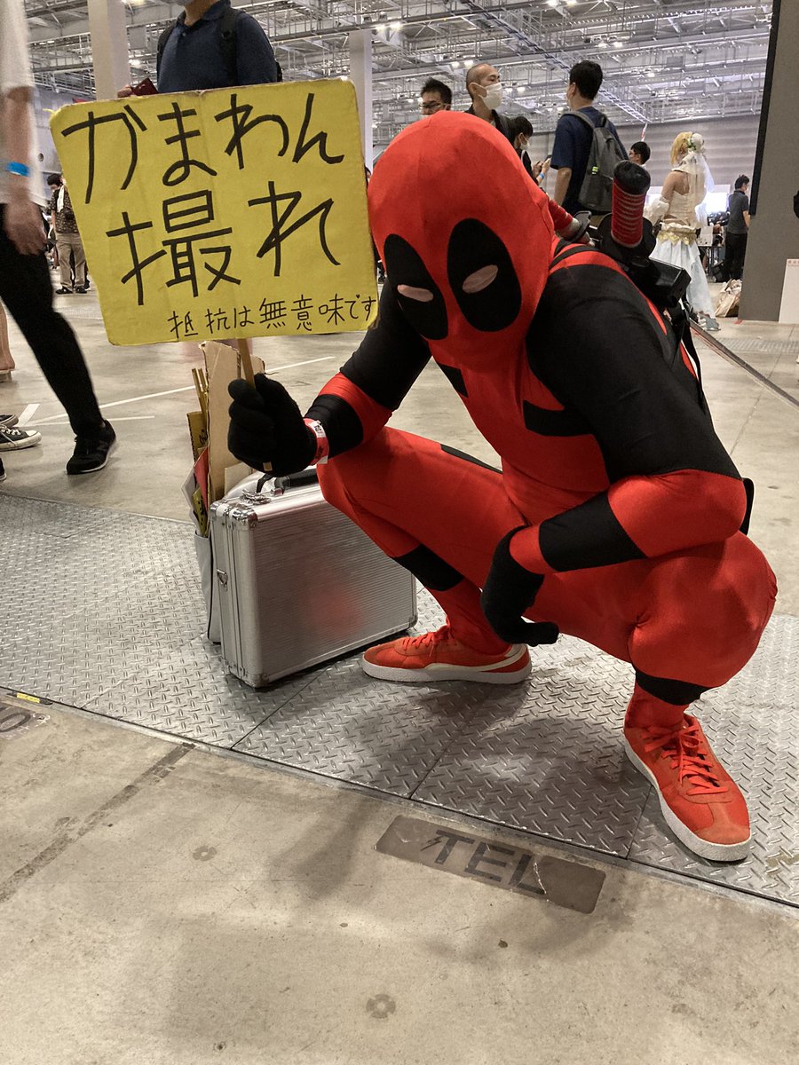 1 18 残り時間少ないけど、本日のコスプレ撮影スタート。まずは寛大なデップーから。#C100 #C100コスプレ #C100_cos 22/08/14 14:37