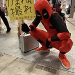 残り時間少ないけど、本日のコスプレ撮影スタート。まずは寛大なデップーから。#C100 #C100コスプレ #C100_cos