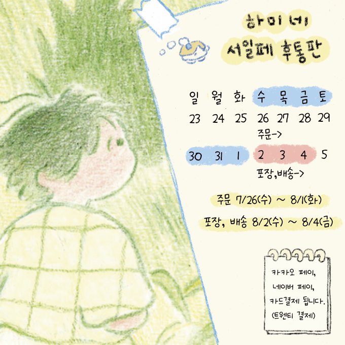 <RT이벤트> 안녕하세요! 하루 하루 잘 보내고 계셨나요? 서일페 후통판을 들고 왔어요😽 이번 여름에 그린 그림들과, 이전의 작업들도 많이 올려두었답니다! 모쪼록 즐겁게 둘러보셔요🌿 7/26(수) 9시 오픈~ 8/1(화) 🍀RT추첨을 하여 한 분께 신상팩을 보내드려요! form.twenty.style/v1/dus0192/116…