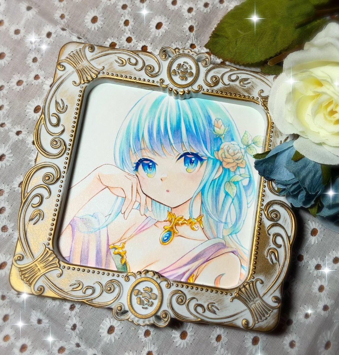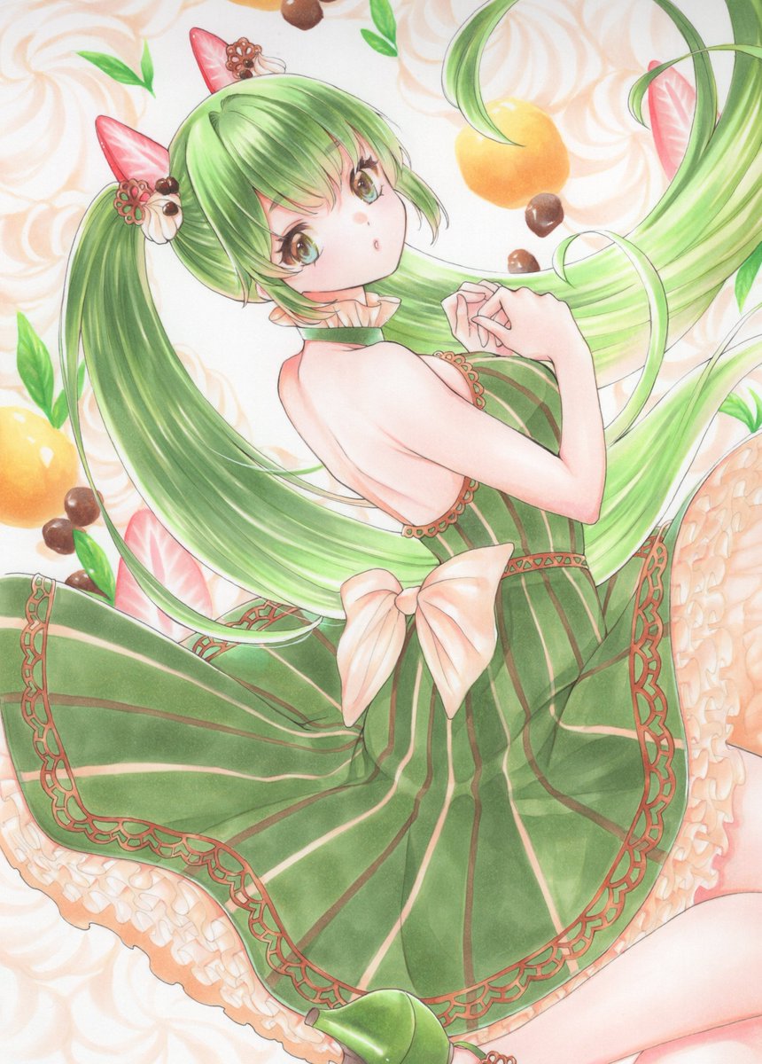 #sweetsmagic展 (10月29日〜11月9日) 「matcha seam dress」🍰✨ 額縁もアンティークな感じで抹茶ケーキと合わせてみました🍰✨ #コピック #アナログイラスト