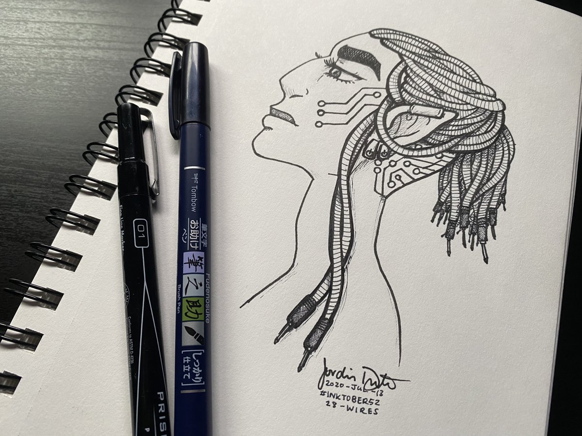 Done on Monday, during Staff Meeting. Then spent the next 2 days adding just a few more lines. Am posting this to make myself stop. #Inktober52 Prompt 28 #Wires #inktober #inktober2020