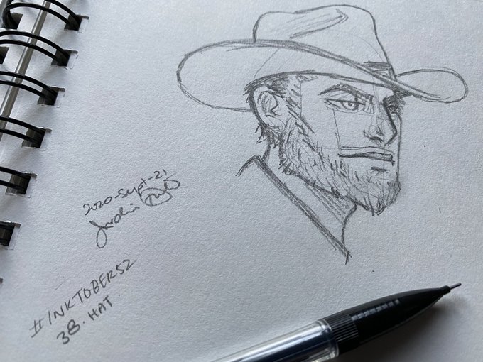 Quick #sketch and #ink of a cowboy with beard, for #inktober52 #prompt38 #hat. #Inktober #inktober2020