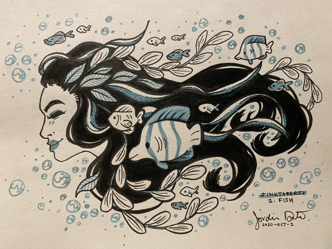 It is the first day of #inktober2020! Here is my Prompt 1 #Fish #ink. I may have added more bubbles than I meant to 😊 #Inktober #inktober2020day1 #InktoberDay1