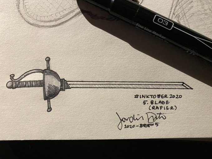 #inktober2020 Day 5! Did a rapier for Prompt 5 #Blade. Just something simple today. #Inktober #inktober2020day5 #InktoberDay5