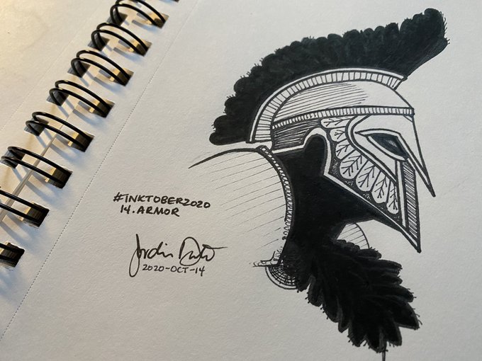 #inktober2020 Day 14! Prompt 14 #Armor. Sketch and #ink of an owl-Spartan helmet person. #Inktober #inktober2020day14 #InktoberDay14