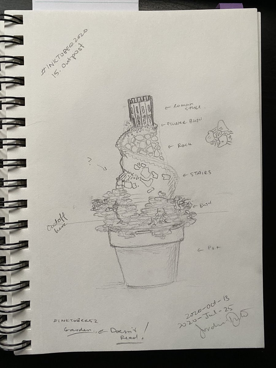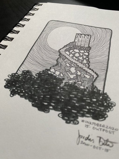 #inktober2020 Day 15! It is always awesome when you find a purpose for a previously discarded sketch. Tweaked an old #Inktober sketch (that I didn’t end up using for that prompt) for Prompt 15 #Outpost. Works much better for this 😊 #inktober2020day15 #InktoberDay15