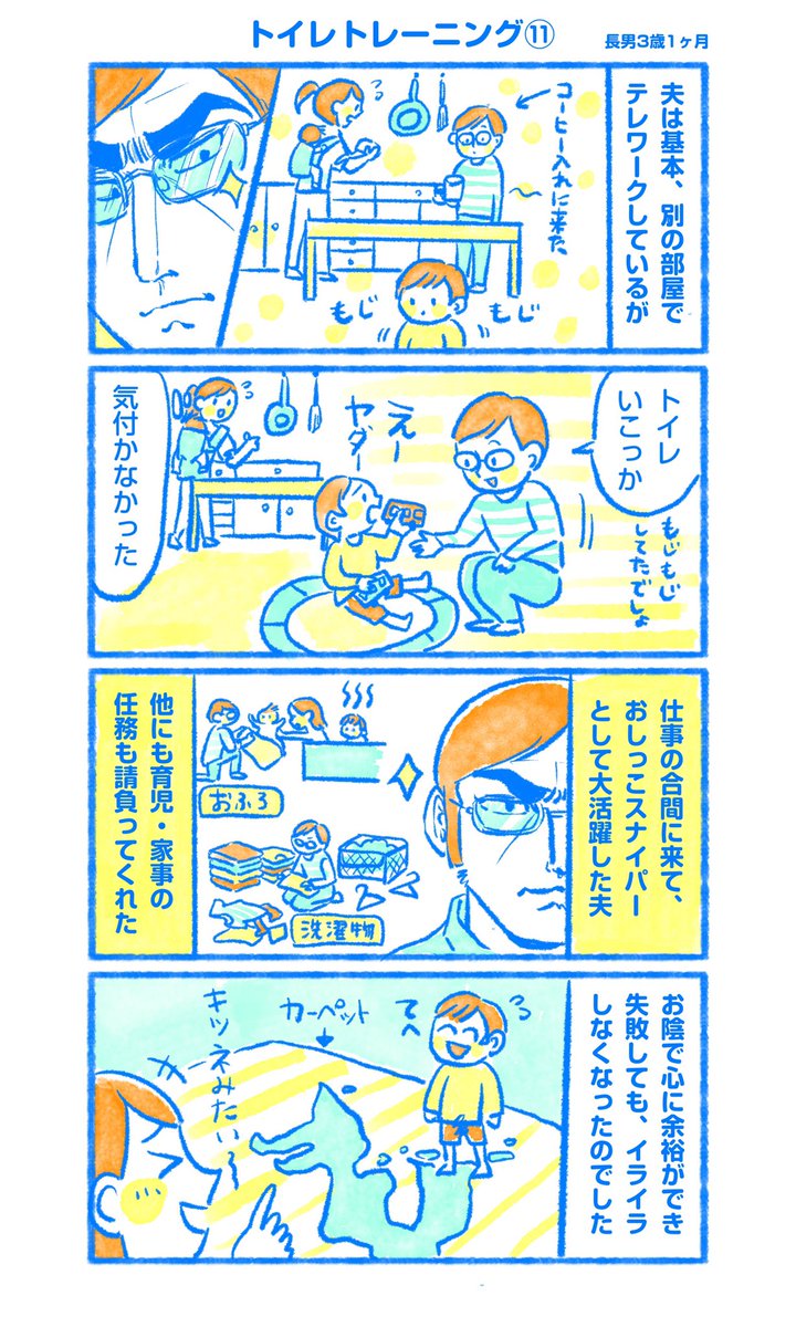 1 14 長男のトイレトレの話⑪⑫です。正直長男のトイレトレは在宅になった夫のお陰で進んだと思ってます。ありがとう夫😭✨ つぎで終わります〜! #育児 #育児絵日記 #育児漫画 #トイレトレーニング #トイレトレ 21/06/19 21:09