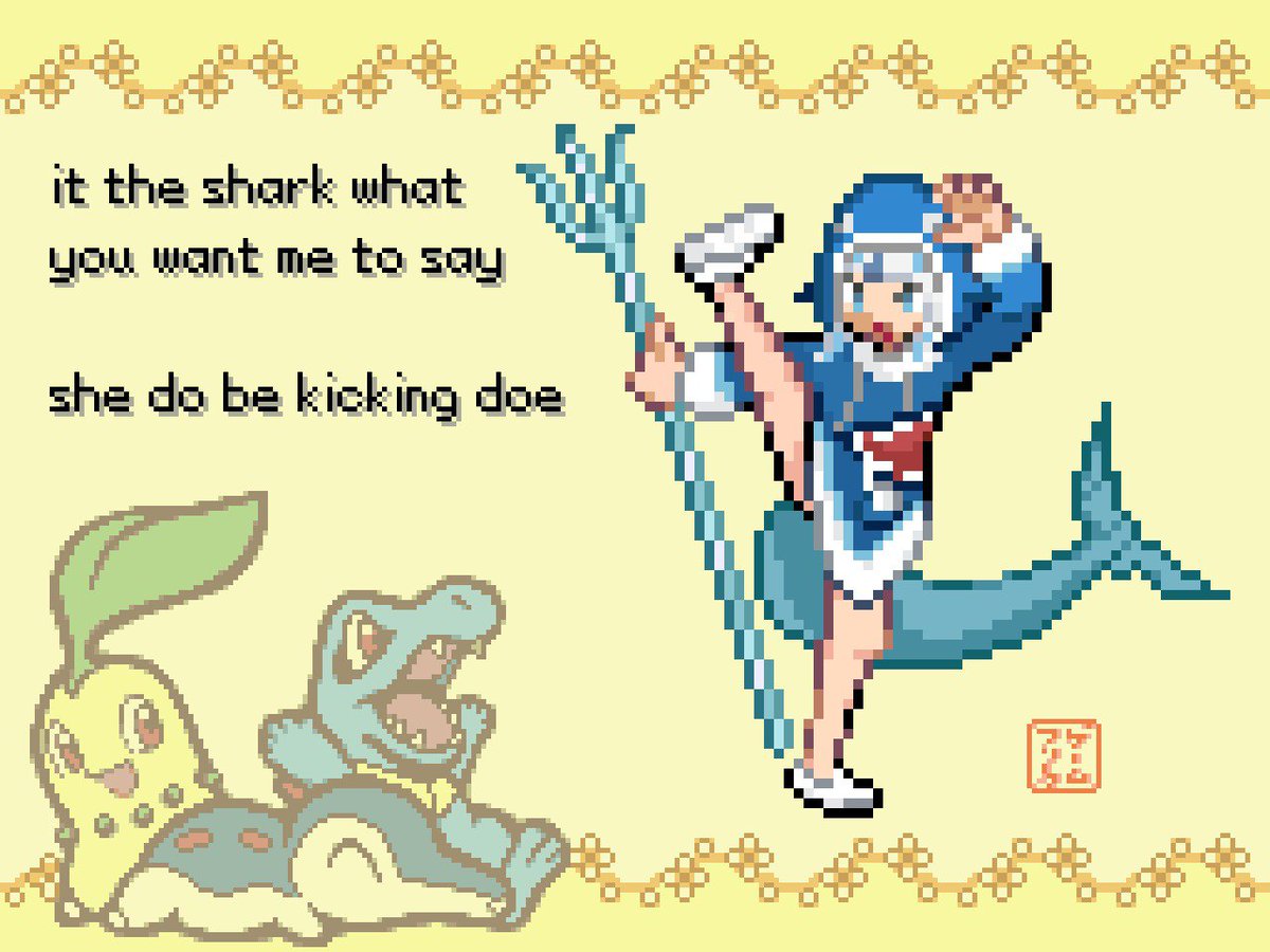Bae's pokemon team! Her overworld sprite was the hardest to make, took me a solid week straight to get it right >:9 this is her alternate outfit that doesn't appear in the game. love watching dis goober and her butt collection #illustrayBAE