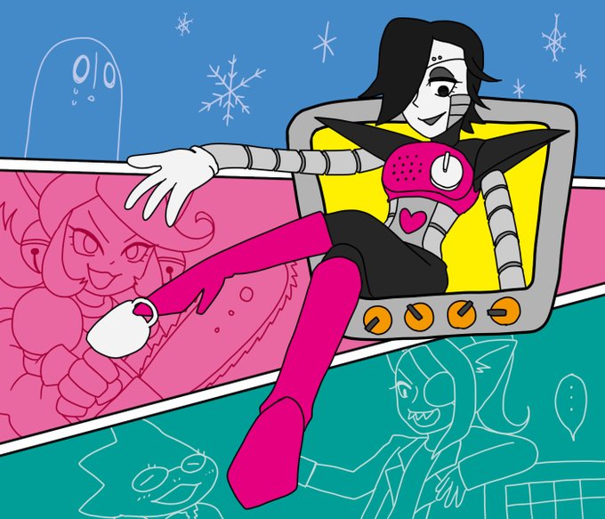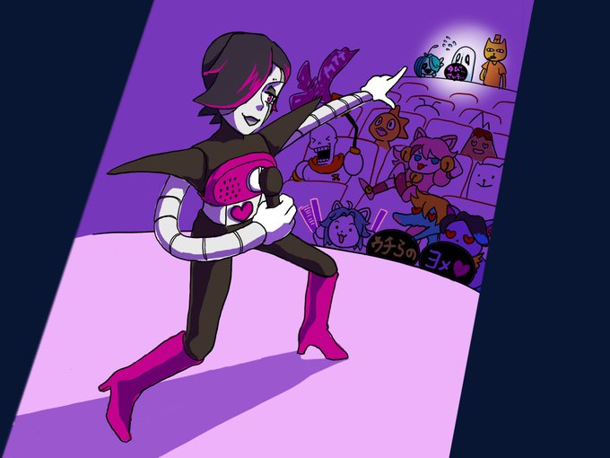 お題:「ファンサービス」(fun service) 「うしろのせきまで みえてるよ!」 メタトンソロライブにお忍びでやってきたメタトンバンドのメンバーたち #メタトン版深夜の真剣お絵描き60分一本勝負