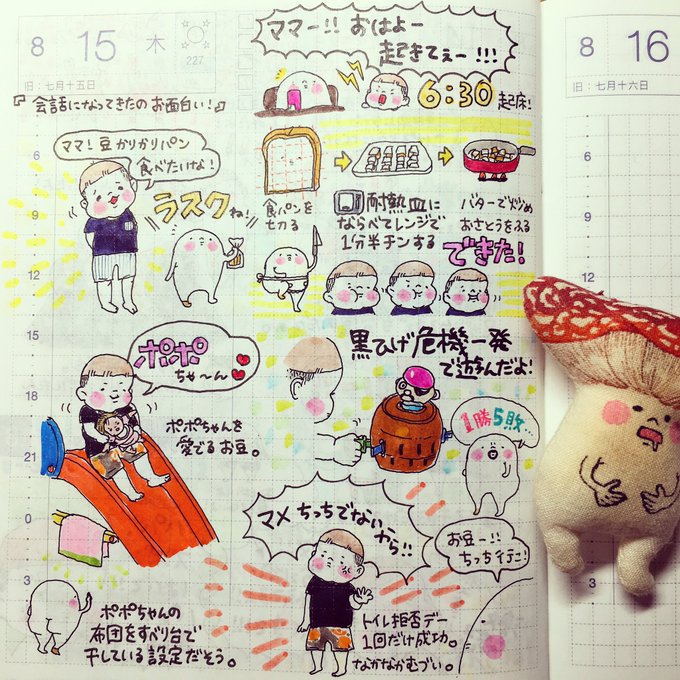 8/16 #ほぼ日手帳 #ほぼ日手帳オリジナル #お尻絵日記 #お尻漫画 #育児絵日記 #育児日記 #2歳9ヶ月