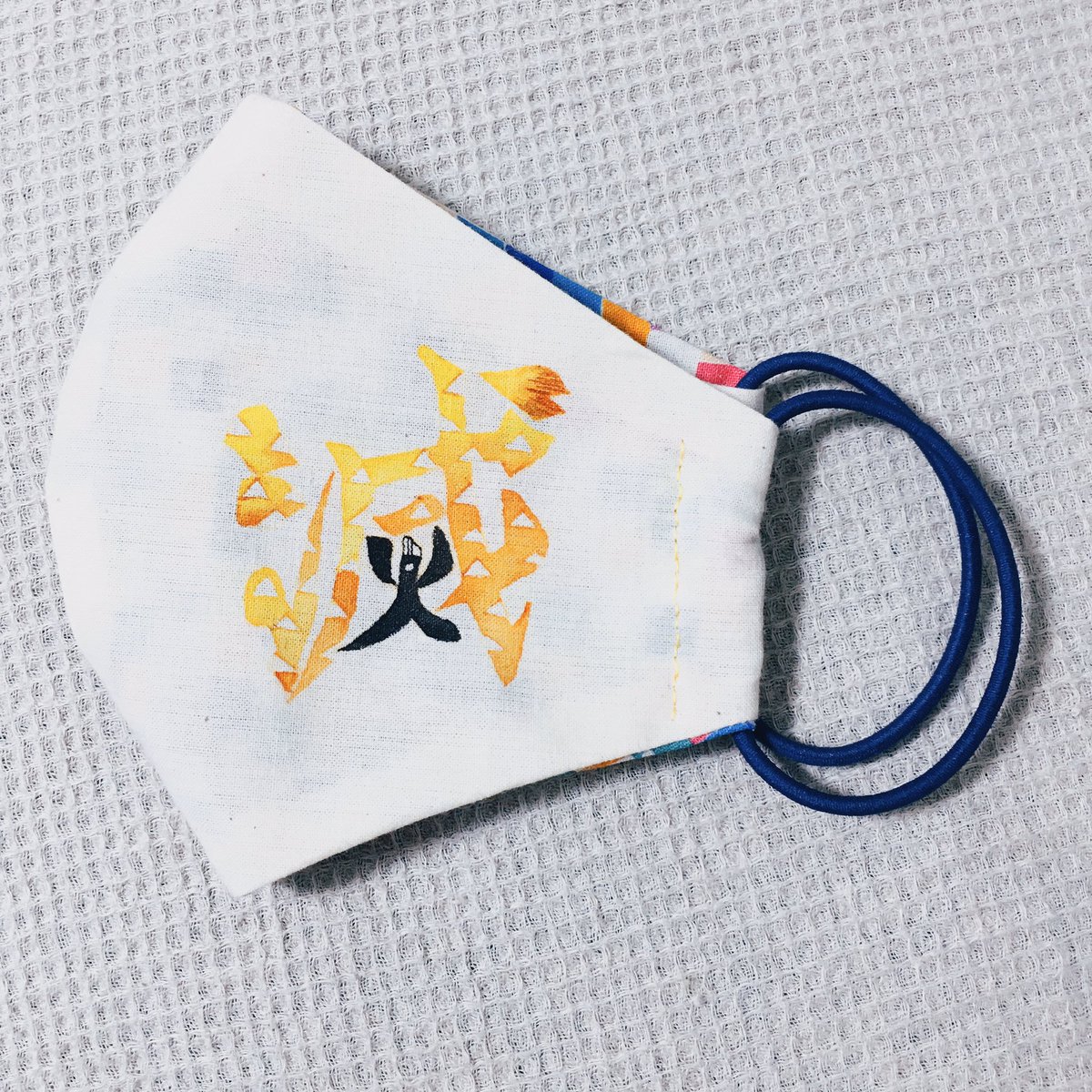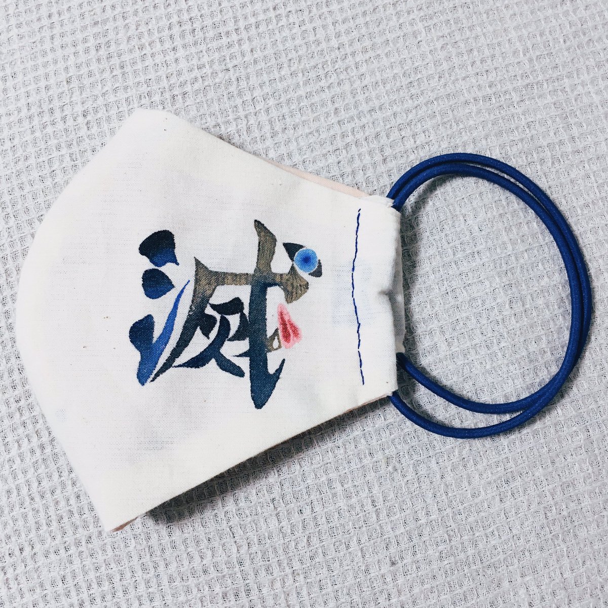 #自慢のマスクを見てくれよ 手描きで描いた蛸、猫、滅!! 鬼滅マスクはお友だちにプレゼントしたよ! 布用絵の具で描いてみたよ。