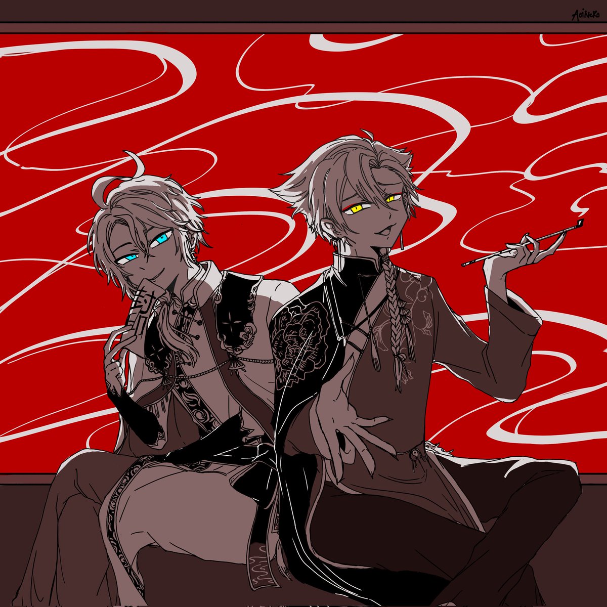Kyonshi AU (3) 🌞:" If I told you my secret would you guys not hate me?" #描いた晴 #上弦画 #長尾百景