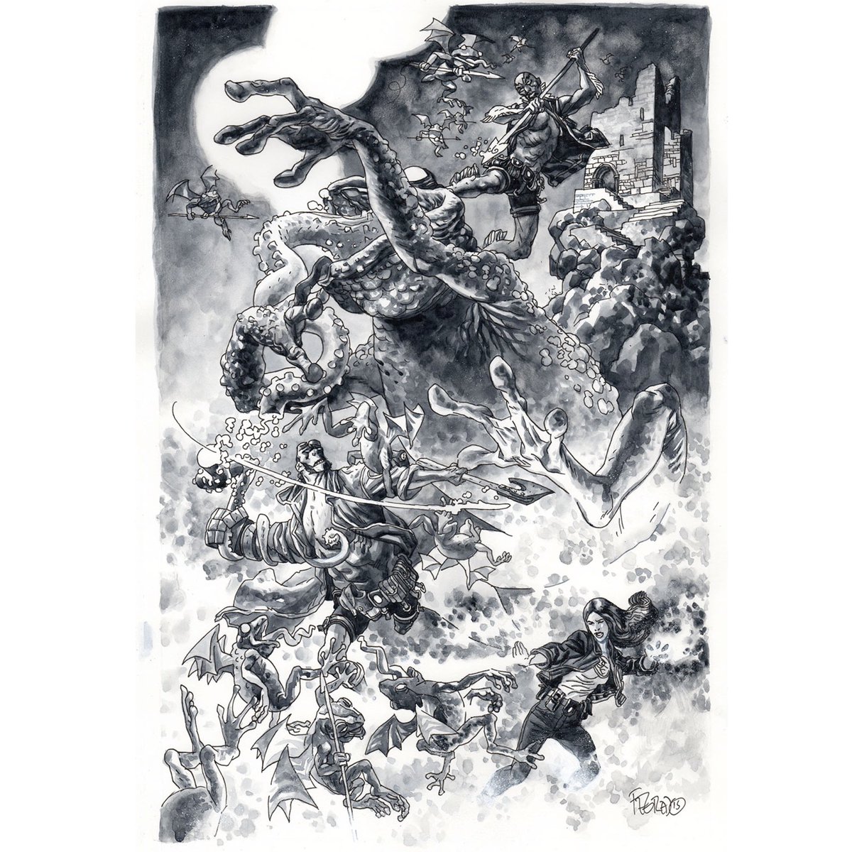 Covers for Giant Robot Hellboy #2 by myself and the magnificently widescreen @DarrowGeof . More details and nice words from @artofmmignola here… screenrant.com/giant-robot-he…