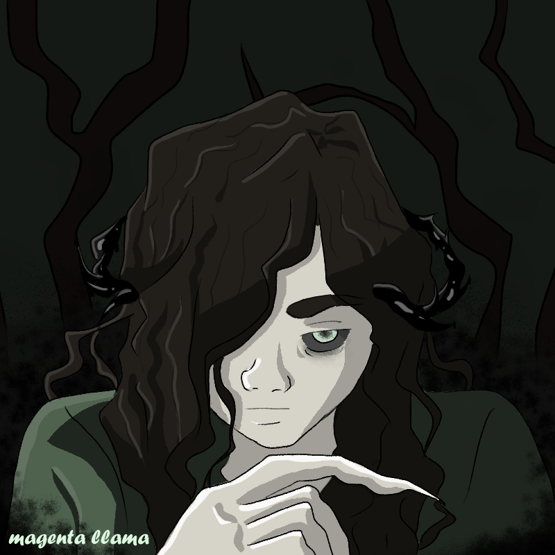 Oh! And this is Fern! My #Hexblood Shadow sorcerer who's been recently retrieved from #Shadowfell :3 She be a creepy forest bby sitting in the corner peeling her skin #dnd #dungeonsanddragons #dndsorcerer #dndart #dndoc #digitalart #fantasy
