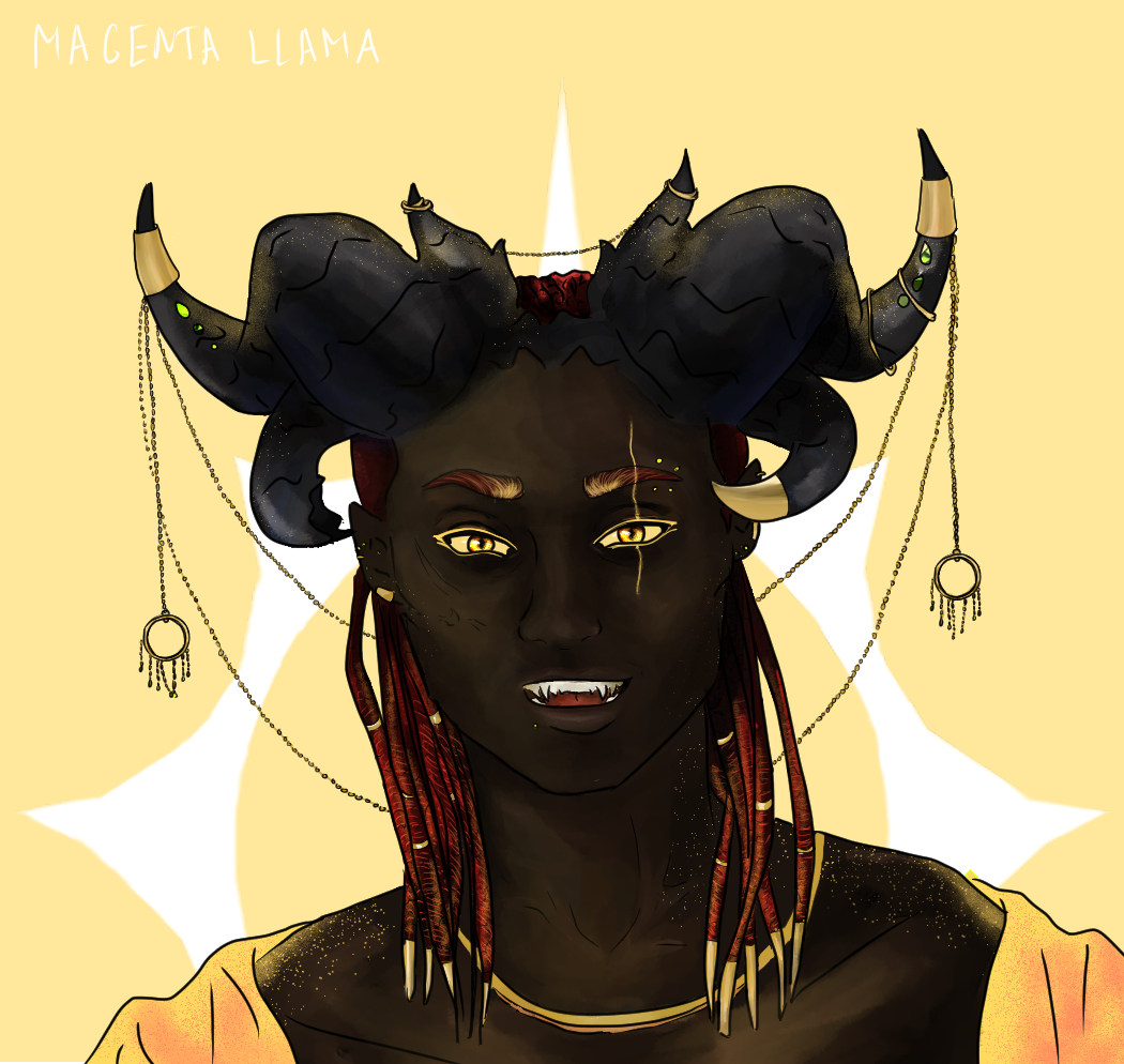And this is Incandescent, They/He! They are my Light Domain Cleric and are, of course, glorious. #dnd #dungeonsanddragons #tiefling #dndoc #dndart #dndcleric #digitalart #fantasy #originalcharacter