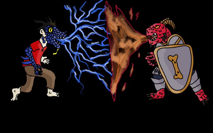 Pitirijas (Draconic Bloodline Human Sorcerer) vs. Perejilo (War Domain Dragonborn Cleric), colliding their dragon breath #DnDcharacter #DnD #dnd5e #dndart #sorcerer #cleric #wardomain #draconicbloodline