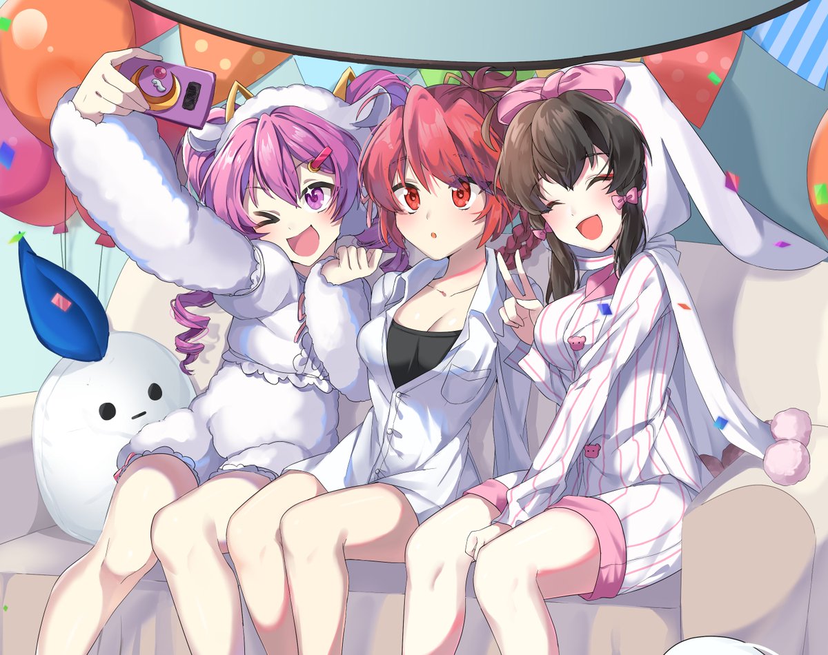 애덜 파자마뉴짤 올라온 기념으로 오랜만에 여캐즈 파자마그렸던거 재업 (라비 나오기 전에 그렸던거라 라비 없움)