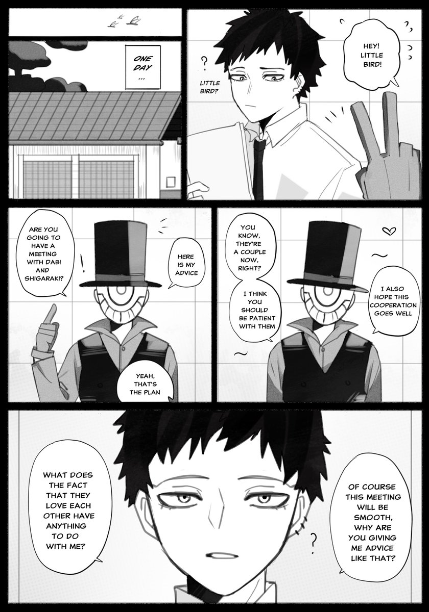 65 380 [ DabiShiga ] Headcanon: Shigaraki likes to hear "i love you" because he didn't hear much from his family when he was young. Dabi is the only one who knows this, he often says ''i love you'' thousands of times to Shigaraki so he can sleep better 22/09/01 01:25